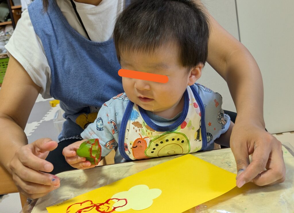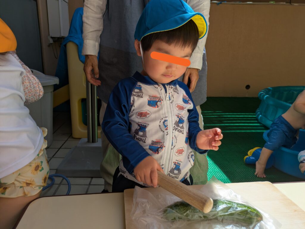 テラスで育てた野菜を使って野菜スタンプをしたりしました。