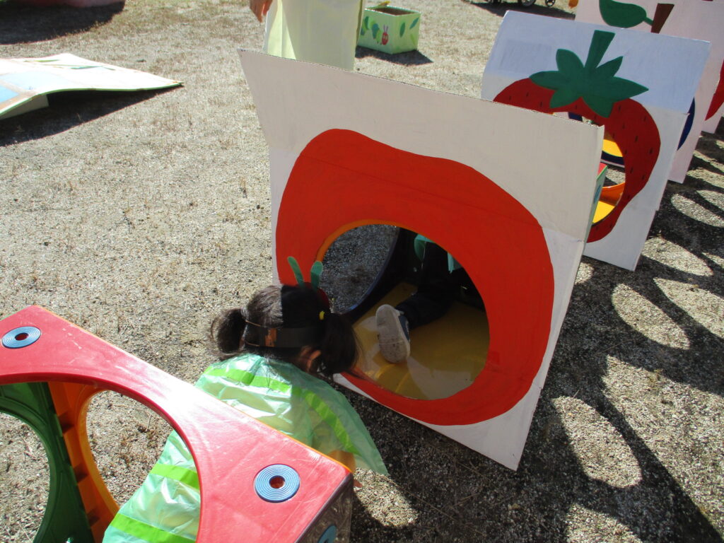 1歳児さんは“はらぺこあおむし”になりきって、食べるものを探しに大冒険しました♪